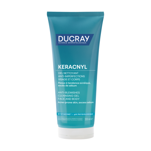 KERACNYL FOAMING GEL е ежедневен почистващ продукт за лице и тяло, подходящ за мазна и/или склонна към акне кожа при тийнейджъри и възрастни.