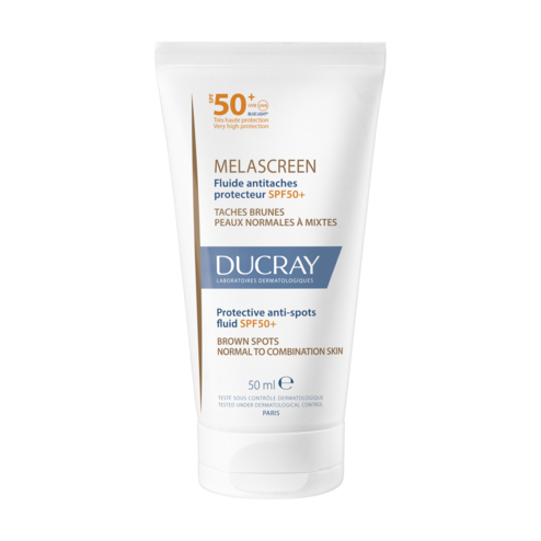 MELASCREEN Fluido protector anti-manchas SPF50+ es el 1er fluido anti-manchas diario con muy alta protección que previene y reduce la aparición de manchas marrones, al mismo tiempo que protege la piel contra los UVB, los rayos UVA cortos y largos, la luz azul y los efectos nocivos de la contaminación.