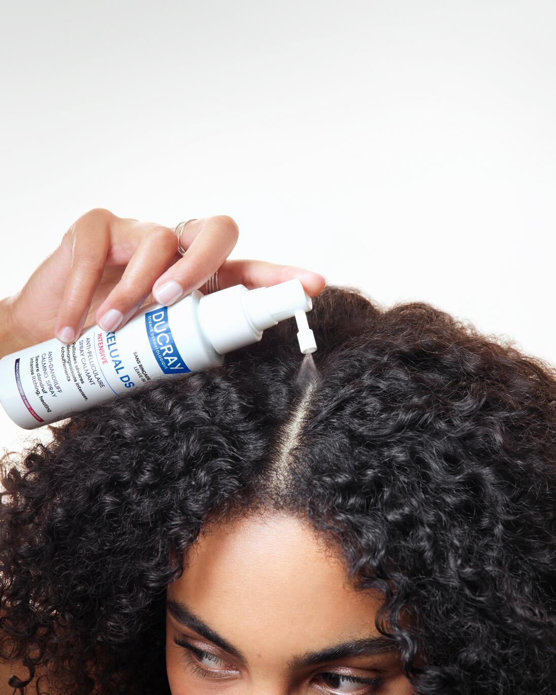 • El spray calmante KELUAL DS INTENSIVE ofrece una solución refrescante y rápida contra las crisis, sin dejar caspa, picor ni sensación de quemazón desde la primera aplicación¹.
