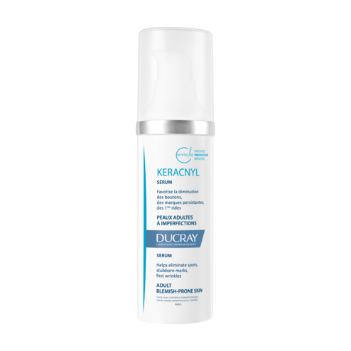 • Le sérum KERACNYL cible les imperfections des peaux adultes à tendance acnéique • Sa formule triple action favorise l'élimination des boutons et permet également de lutter contre les signes du vieillissement • L'ACIDE AZÉLAÏQUE contribue à atténuer les marques résiduelles persistantes et les ridules• L'extrait d'origine naturelle de MYRTACINE®, actif innovant breveté* agit sur les imperfections et lutte contre C. acnes, en limitant son organisation en biofilm• La peau paraît plus nette et lisse, les imperfections sont atténuées • Très bonne base de maquillage
