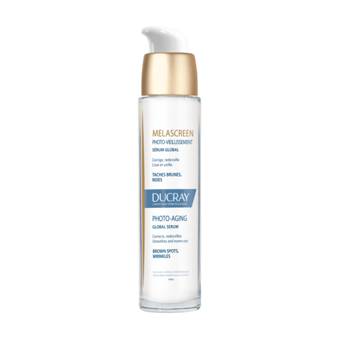 • MELASCREEN PHOTO-VIEILLISSEMENT Sérum global est un soin global qui prévient et corrige les signes du photo-vieillissement tels que les taches brunes, les rides et la perte de fermeté • Sa formule contient des actifs dermatologiques de référence tels que le complexe AZÉLAWHITE® qui corrige les taches brunes, L'ACIDE GLYCOLIQUE qui lisse le micro-relief cutané, l'ACIDE HYALURONIQUE qui contribue à repulper la peau et la VITAMINE E aux propriétés anti-oxydantes qui aide à prévenir les méfaits des radicaux libres