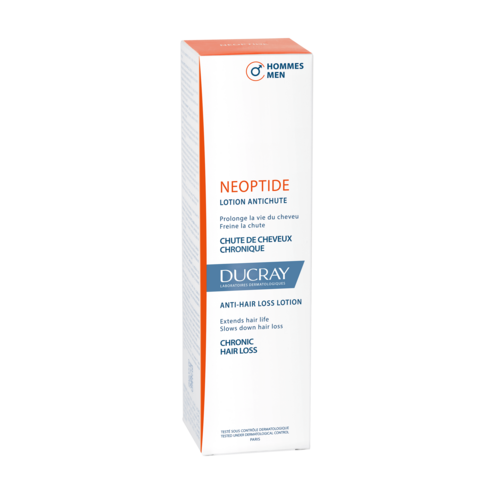 • La lotion antichute Hommes NEOPTIDE est un soin capillaire indiqué en cas de chute de cheveux chronique chez l'homme • Un soin sans rinçage adapté pour une utilisation quotidienne grâce à sa texture légère qui ne graisse pas les cheveux • Sa formule contient un duo d'actifs innovants breveté* à base de PEPTIDOXYL-4 et de MONOLAURINE qui va, d'une part, stimuler la microcirculation du cuir chevelu** et, d'autre part, limiter l'action de l'enzyme principalement responsable de la chute de cheveux**